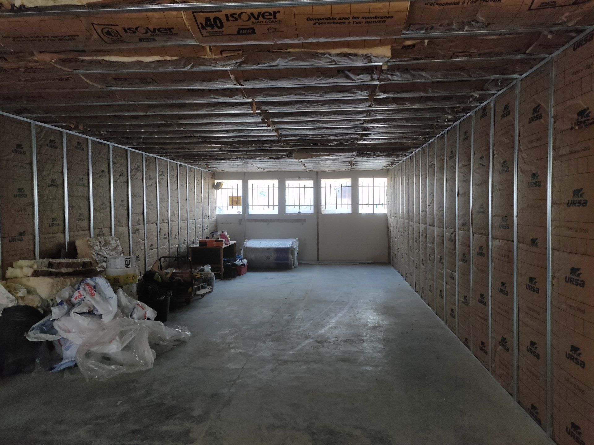 Local de 85M2.Isolation et plâtrerie.